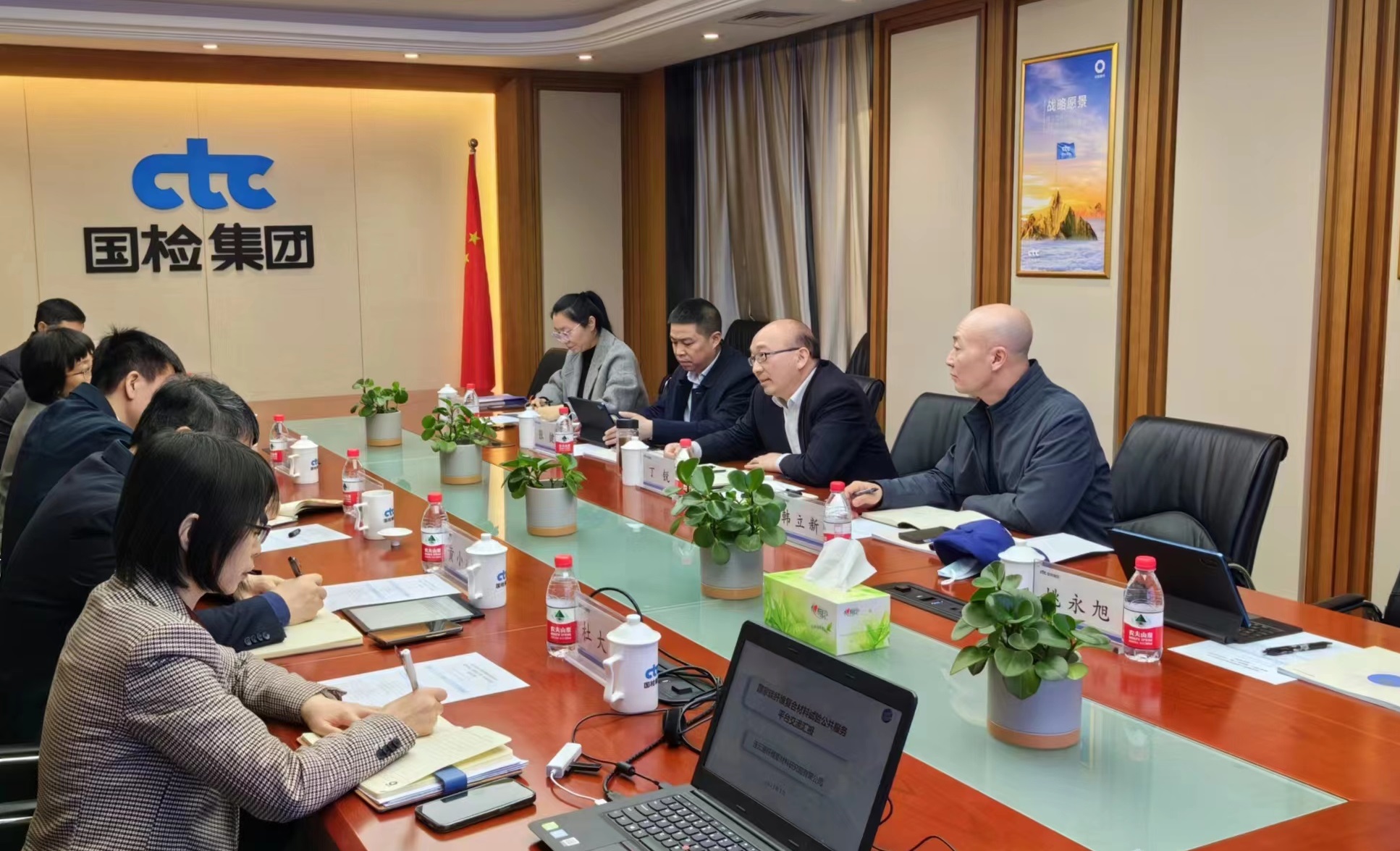 3月9日,集团公司党委书记、董事长丁锐率队赴北京拜访中国国检测试控股集团股份有限公司,就推进纤维新材料领域合作进行考察交流。集团公司投资发展部、纤维新材料研究院等相关人员陪同。
