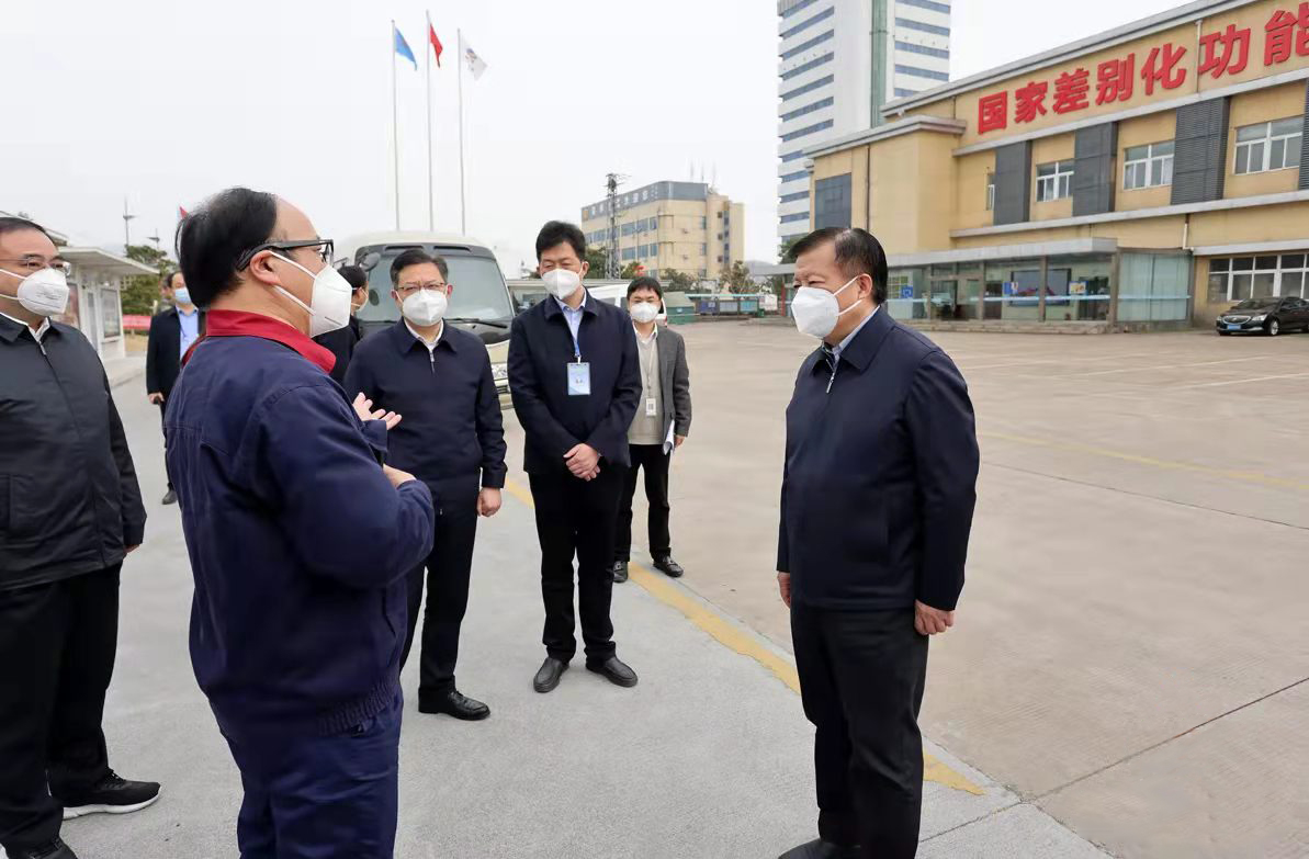 3月16下午,市委书记方伟到集团调研,并在氨纶公司检查疫情防控工作。市领导林小异、商振江陪同,集团公司党委书记、董事长杨龙参加调研。