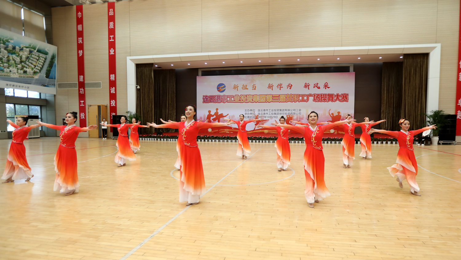 “新担当、新作为、新风采”,增进职工友谊,凝聚团队力量。10月29日,由集团工会主办,徐圩投资公司承办的集团公司第三届女职工广场操舞大赛在徐圩新区体育馆激情开赛,来自各单位的11支代表队近150名女职工共同献上一场精彩的文化盛宴。市妇联副主席臧永明,集团公司党委副书记戴鸿鸣、纪委书记汪群、工会主席刘承志等领导参加活动。