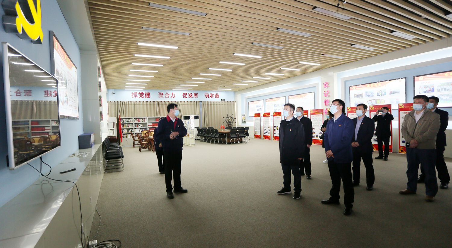 10月28日,市国资委党委委员、副主任许峰带领市属监管企业党委专职副书记及有关部门负责同志来集团公司集中观摩交流党建引领促进各项事业发展情况。集团公司党委副书记戴鸿鸣参加并介绍相关工作。