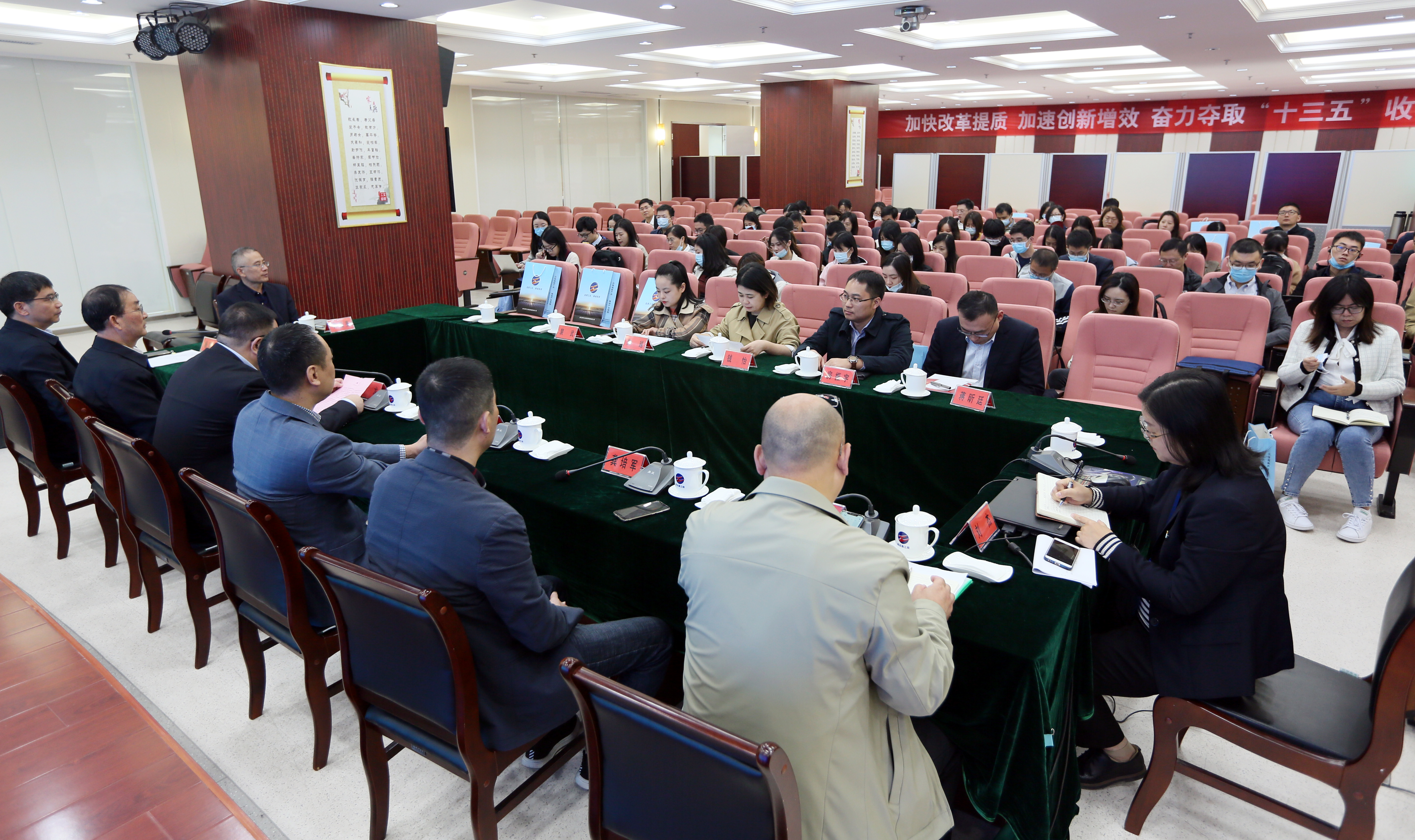 与会代表参观了集团展厅,听取目前发展和未来规划情况介绍,并对工投集团在引导高新产业、推进产业转型、服务企业发展及重大工业项目投资等方面展开互动交流,提建议、谈想法,解疑释惑,为今后更好地开展合作打下良好基础。