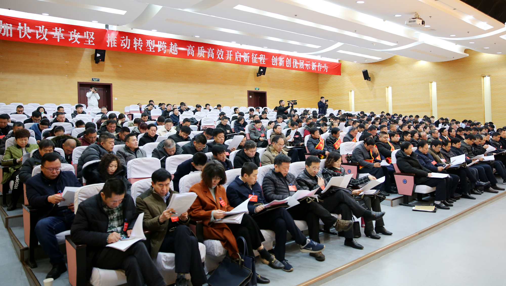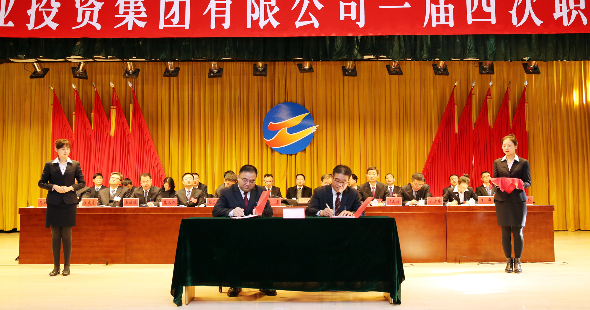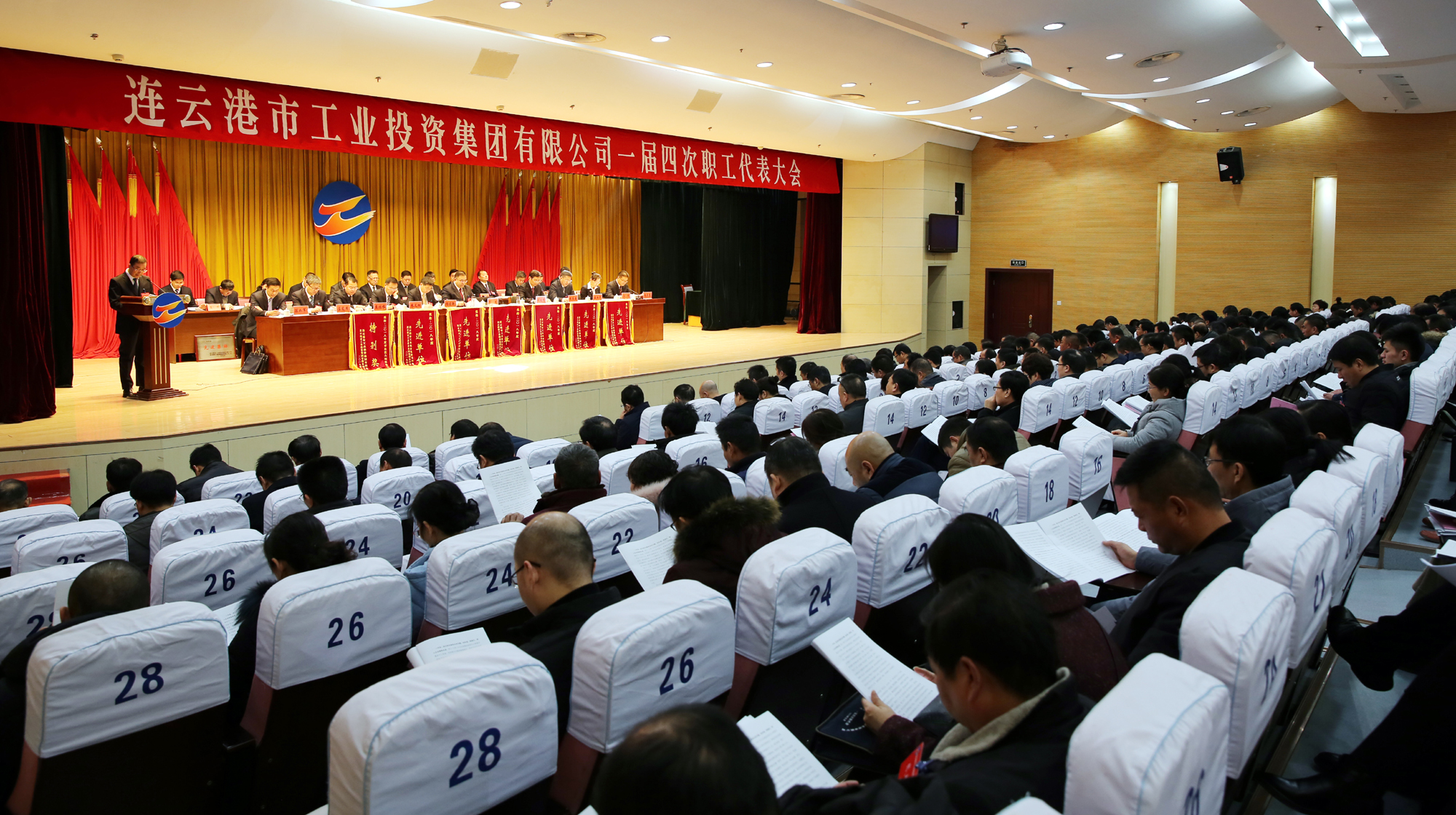 新时代催人奋进,新征程任重道远。1月21日上午,集团公司一届四次职工代表大会在市委党校第一报告厅隆重召开,来自各条战线的208名职工代表齐聚一堂,共商工投发展大计。集团公司领导杨龙、胡建明、杨国新、张其海、朱天松、王士华、戴鸿鸣、汪群、匡友本、刘承志、陈如军在主席台前排就座。董事长、党委书记杨龙作讲话,总经理胡建明作工作报告。