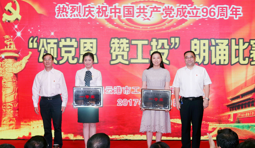 为庆祝中国共产党成立96周年,缅怀党的丰功伟绩,6月29日下午,集团公司党委在连云港职业技术学院文化艺术中心举办“颂党恩·赞工投”朗诵比赛,集团公司领导杨龙、胡建明、张其海、王士华、戴鸿鸣、汪群、匡友本、陈如军与来自集团公司各条战线的近三百名代表欢聚一堂,共同庆祝党的96岁华诞。