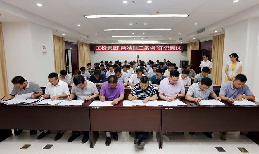 为进一步加强“两准则三条例”的学习贯彻落实,6月28日下午,集团公司纪委组织中层党员干部集中进行了“两准则三条例”知识测试。