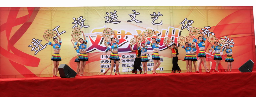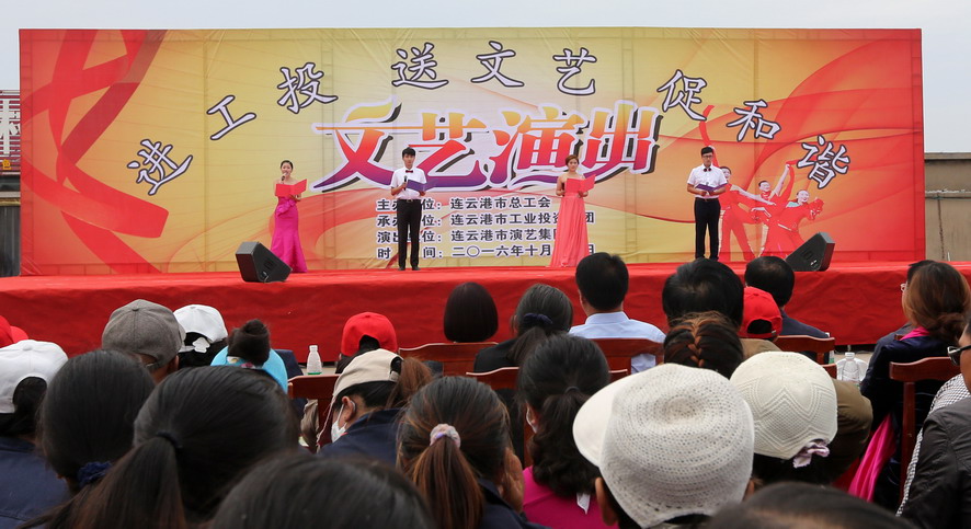 10月11日下午,由连云港市总工会主办、集团公司承办、市演艺集团演出的“进工投、送文艺、促和谐”文艺演出在灌西投资公司精彩上演,市总工会副主席陈健、集团公司工会主席戴鸿鸣等领导,以及1000余名观众观看了演出。