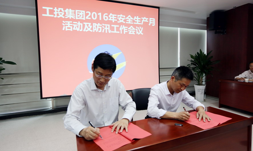 6月2日下午,集团公司召开2016年“安全生产月”活动部署及防汛防旱工作会议。集团公司总经理胡建明出席会议并讲话。副总经理张其海对“安全生产月”活动进行布署,并代表集团公司与各单位签定防汛责任状。总经济师陈如军主持会议,并作2016年防汛工作动员讲话。安全总监胥广会简要点评了前一阶段防汛检查及专家安全检查情况。各单位主要负责人、分管安全工作副总经理、安全部门负责人等参加了会议。