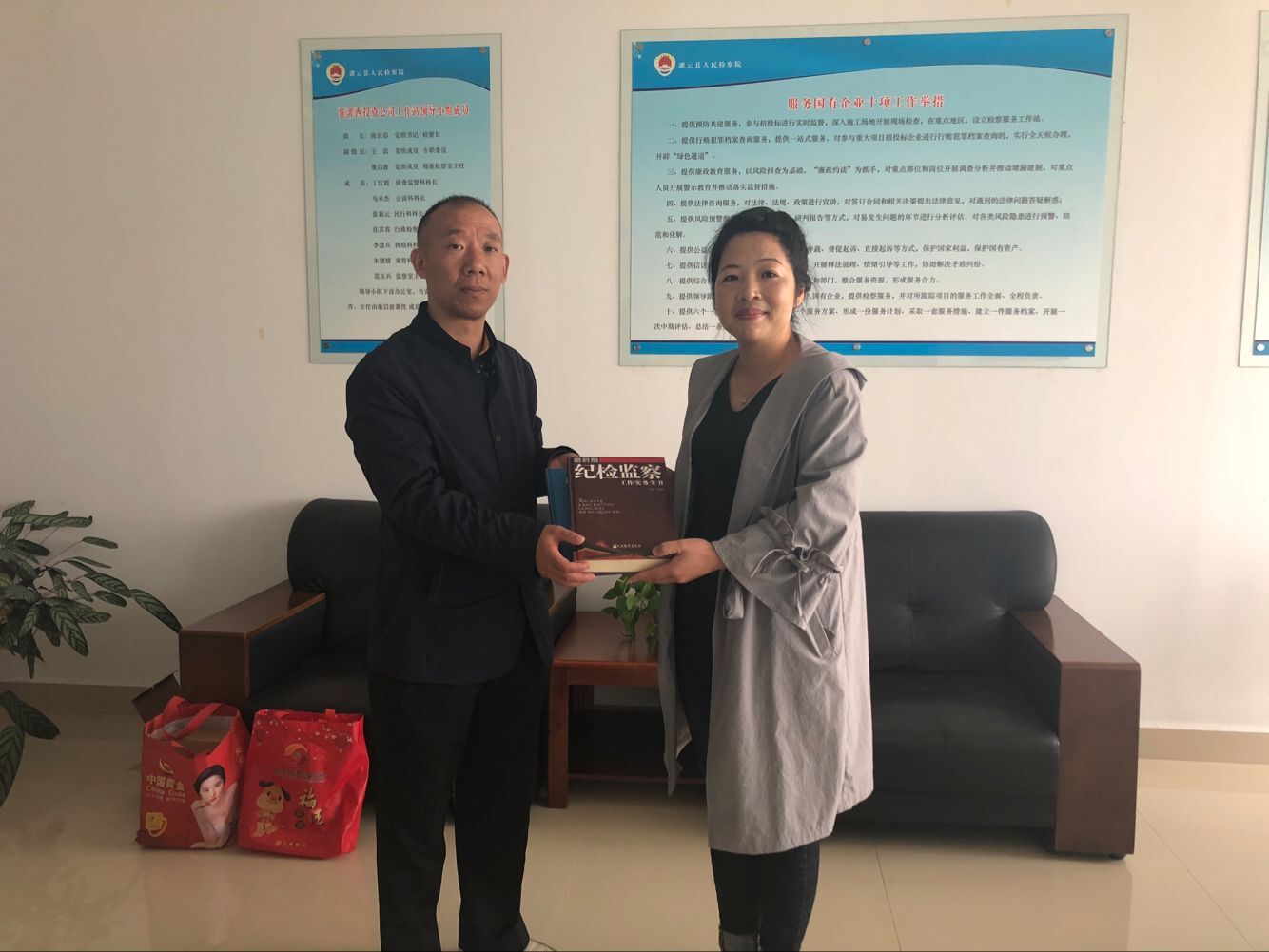 10月17日,灌云县检察院监察室主任范玉兵到灌西投资公司纪委调研工作,进一步加强检察院与企业沟通和了解,促进“检企共建”活动深入开展。