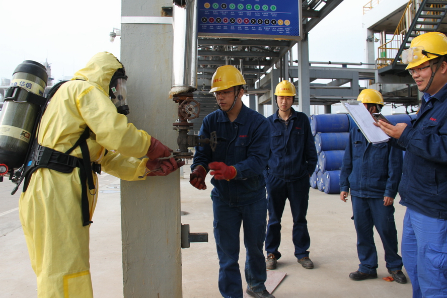 创新竞赛项目,提升员工技能水平。该公司结合生产实际,完善比赛内容,创新比赛形式,提高比赛难度,分别在双氧水、氯化苄、苯甲醛、仓储、检测和维保6个重要操作岗位分组进行理论和操作比赛。在往年员工劳动技能竞赛方案的基础上,增加换滤袋、苯甲醛包装等竞赛项目,其中叉车、滚桶和抢险救援竞赛项目扩大了参赛范围。此外,应急响应、应急处置和抢险救援项目不仅让参赛员工更加熟悉防化服佩戴和呼吸器穿戴方法,还检验了各级人员对突发事故的应急救援实战能力和协调程度。这些竞赛项目有效提升了员工的操作技能水平、安全防范意识、应急救援能力和隐患排查能力。