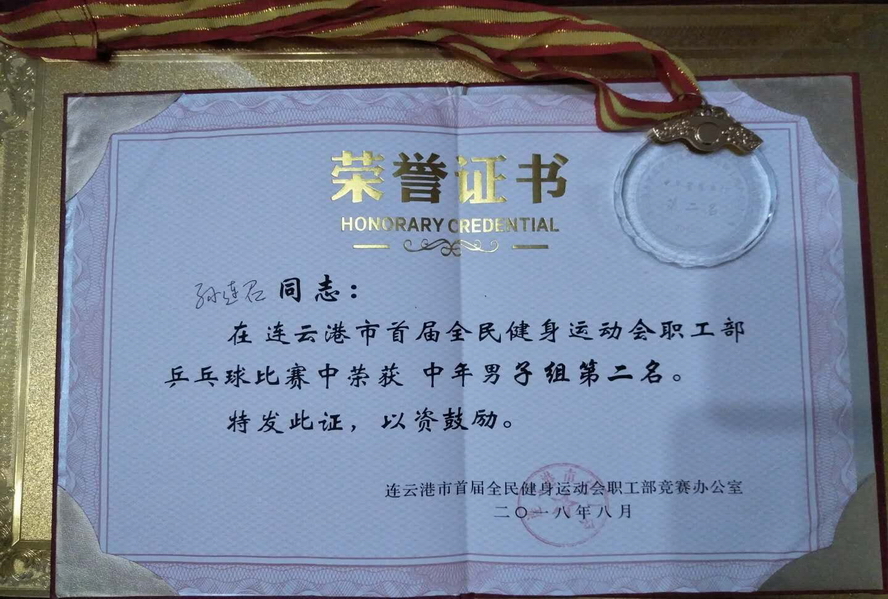 8月4日至5日,市首届全民健身运动会职工部乒乓球比赛在神鹰碳纤维乒乓球馆举行,我公司选派3名运动员参赛。经过五轮的激烈角逐,孙连召获中年组亚军。
