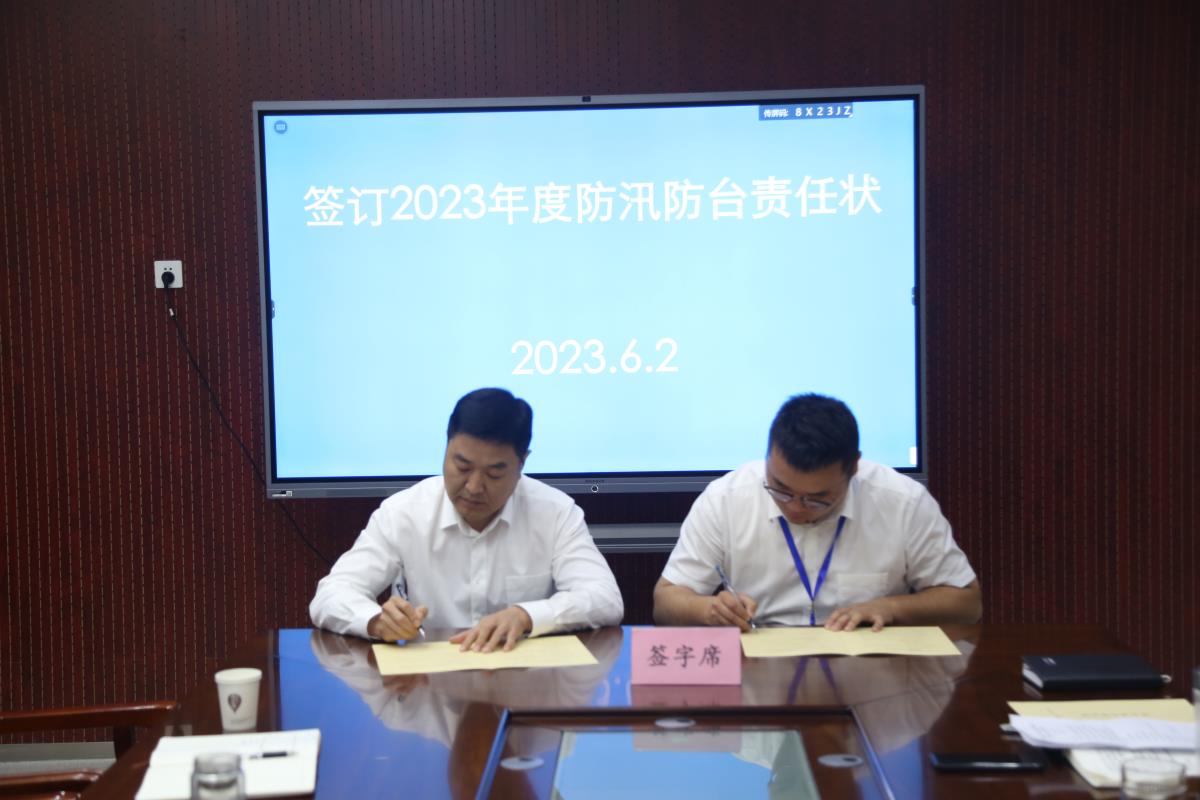 会上,各单位、项目部、园区签订了《2023年度防汛防台责任状》。