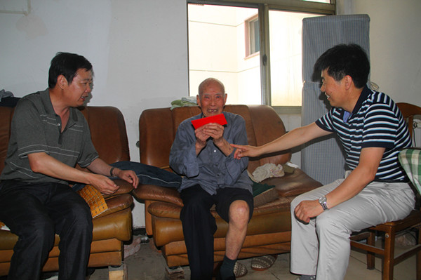 7月22日下午,公司领导卢明生、王志军前往全国劳模郑友根家中看望慰问,询问百岁老人的生活情况和存在的实际困难,为他送去了水果和困难救助金,感谢老人为盐业系统作出的贡献。(徐静)