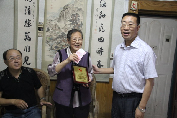为庆祝中国共产党90周年华诞,公司领导走访、慰问了部分建国前老党员,共话峥嵘岁月;并向他们送上慰问金和七一纪念牌,带去组织上对老党员们的关心和问候。老党员梁素华同志激动之情溢于言表,动情地说:“感谢领导关怀,感谢党的恩情……”(司宣)