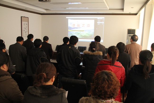 云山雄壮,黄海宽广,四千年的淮盐,在古老的东方唱响……。连日来,雄壮有力,激情向上的集团公司司歌《共架金桥》、《淮盐之恋》在公司广为传唱。 为了增强全公司广大职工的荣誉感、自豪感,抓好企业文化的培育, 公司把传唱集团公司司歌作为提升企业文化影响力,增强企业文化软实力,尽显企业团队精神的大事来抓。并在公司网站上专门设置《共架金桥》、《淮盐之恋》司歌,只要打开网站不仅可以看到公司融入发展的新人、新事、新举措,而且还可以学唱司歌,陶冶情操,收到了很好的效果。 公司机关率先组织开展学唱活动,利用每周五下午时间集中学唱,拉开了全公司学唱司歌活动的序幕。(司宣)