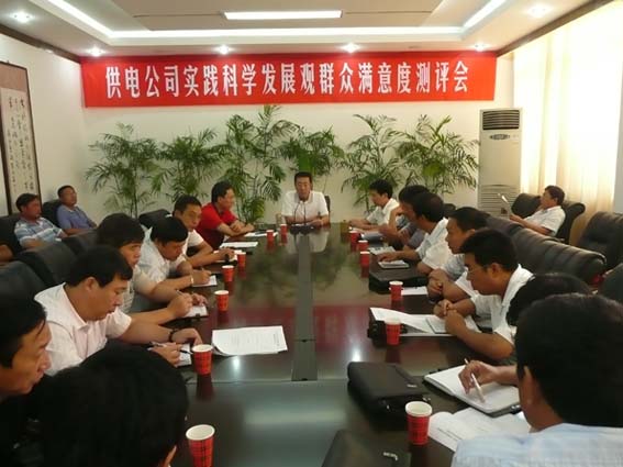 组织学习实践活动群众满意度测评,是学习实践活动的一个重要环节,也是衡量学习实践活动成效的重要标准。为此,我公司根据市委和集团公司的要求,于8月19日在公司会议室对开展学习实践活动情况进行群众满意度测评。公司全体人员、供电所领导班子成员、职工代表40余人参加了测评,切实使满意度测评结果客观真实反映公司学习实践活动的成效和取得的丰硕成果满意度达95.7%。