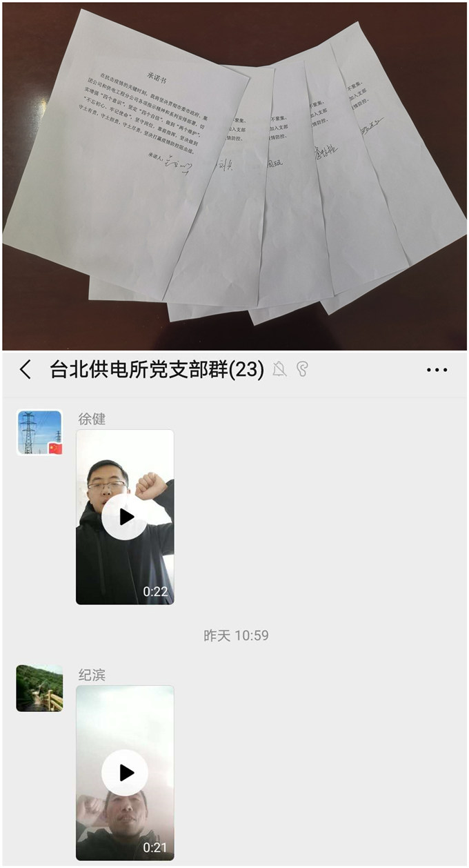 为充分贯彻落实党中央关于打赢疫情防控阻击战的重要指示精神。2月13日,台北供电所党支部开展了“防控疫情,我们在行动”主题党日活动。该支部以“我是党员我宣誓”、“疫情防控我承诺”、“我为疫情防控献一策”系列活动,充分利用网络直播平台和微信APP,通过录制个人宣誓短视频、承诺书签字、集体线上学习等方式方法,号召广大党员同志充分发挥党员先锋模范作用,在抗击疫情的关键时刻,必须服从命令、听从指挥;坚守岗位、恪尽职守;坚定信心、冲锋在前;不忘初心,牢记使命;坚决打赢疫情防控阻击战。(钱明华)