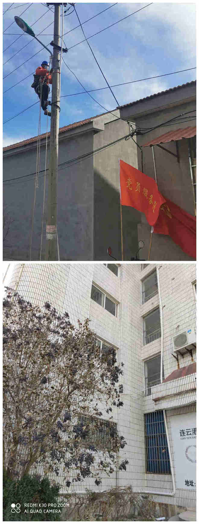 经了解,青口黄沙坨红旗村有多盏路灯不亮,晚上外出的老人摔跤时有发生。考虑到居民晚上没有路灯出行不方便,该所立即组织志愿者义务前往检修,解决了一个群众迫切关心的眼前问题,夜灯下拿着扶梯和维修工具的红马甲,成为小巷里一道有温度的“风景线”。