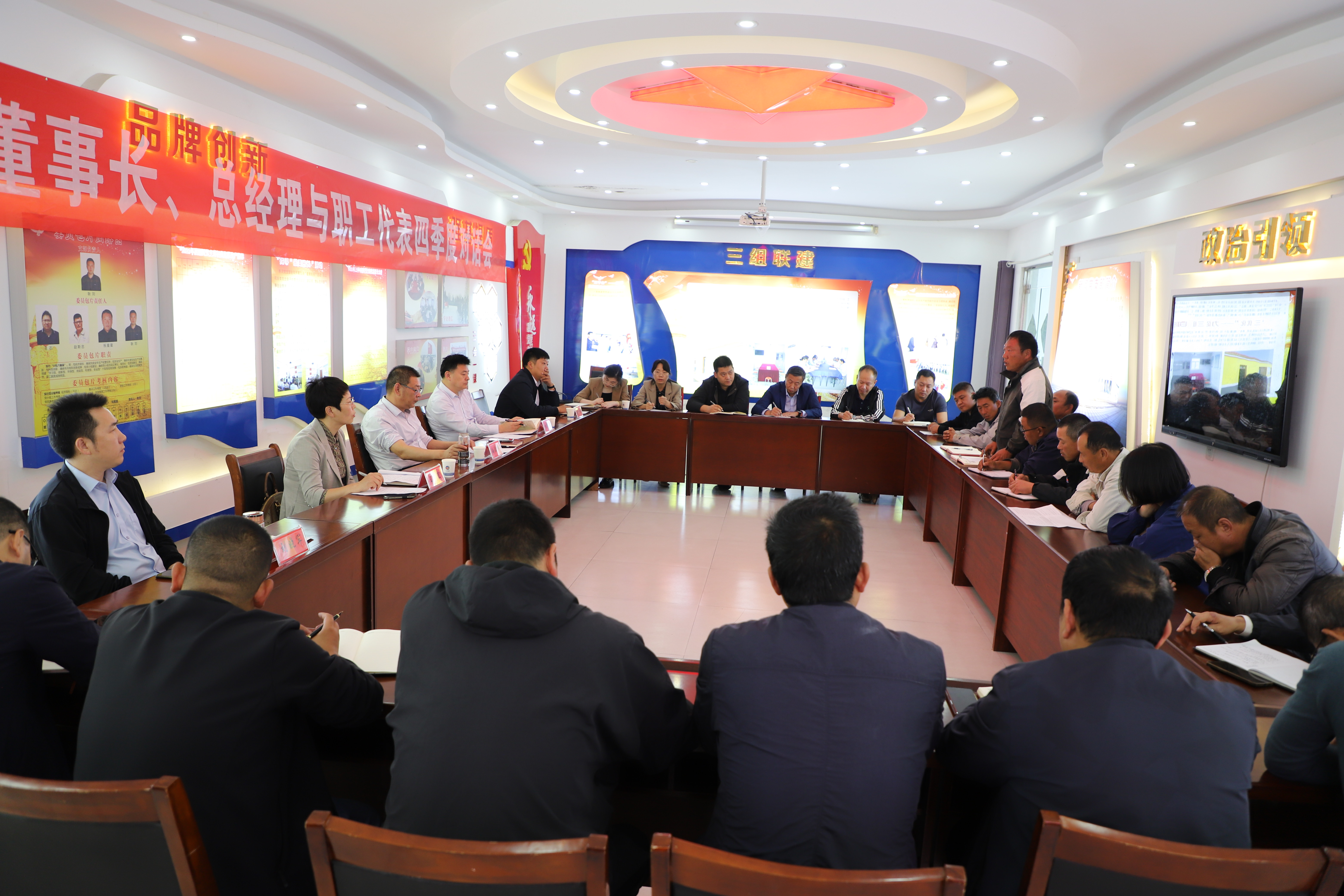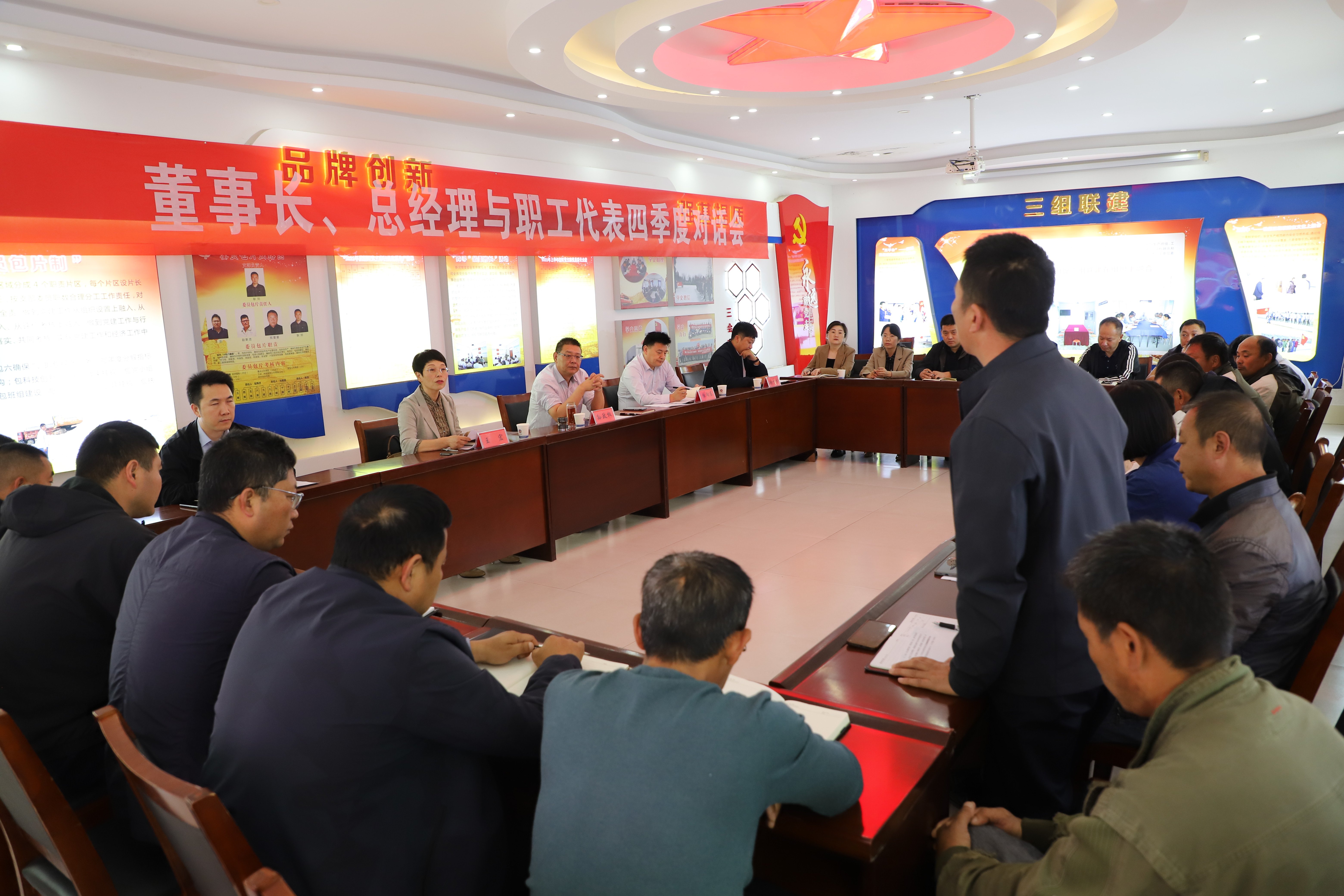 2023年10月19日下午,产业工人代表与公司董事长、总经理齐聚一堂,就生产生活中遇到的问题提建议、献良策。