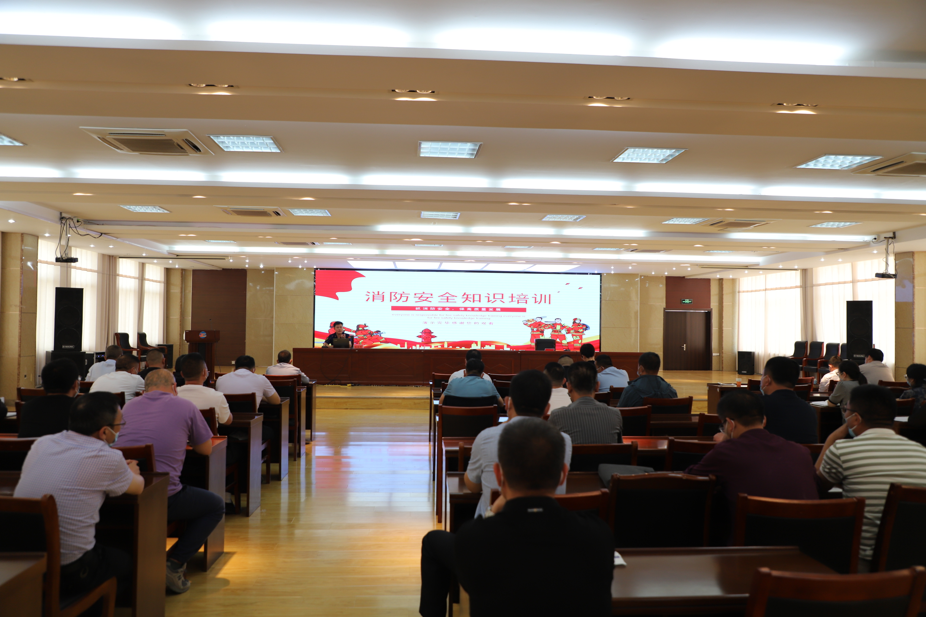 孙科长结合近年来的火灾案例,特别是电气火灾、电动车充电引起的火灾案例,就消防日常管理、巡查及疏散逃生的基本常识、消防火灾的应急和预防、消防器材的正确使用方法进行了生动形象的讲解。期间,播放了大量的火灾实例视频和现场的图片,展示缺乏消防意识和消防知识的严重危害,提醒大家要不断增强消防安全意识,加强消防安全管理,积极主动做好消防安全工作。最后,结合实际对火灾的特点、预防火灾的基本常识、火灾发生过程的基本规律和特点等方面进行了详细解读。并向大家传授了防范措施和如何对初期火灾进行扑救,以及如何组织人员疏散、火场自救逃生方法等知识。