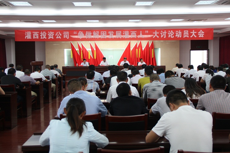 为了进一步统一思想、共克时艰,全面完成今年的目标任务,9月24日下午,投资公司党委在联合服务中心五楼会议室召开了“争做解困发展灌西人”大讨论动员大会,投资公司领导班子成员王德志、吴再忠、王保平、张学峰,机关全体管理人员,各单位党政工团负责人及部分青工代表参加会议。