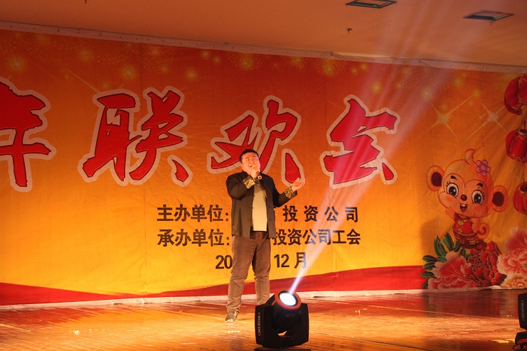 联欢会上,投资公司党委副书记、总经理吴再忠致辞,他首先向公司全体员工及家属致以亲切的问候和诚挚的祝福,肯定了2015年两大公司全体员工在公司领导班子的带领下为公司发展做出的贡献,并鼓励全体员工2016年砥砺奋进、再创辉煌。