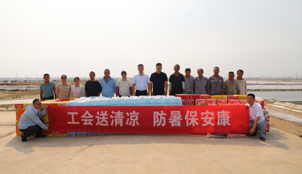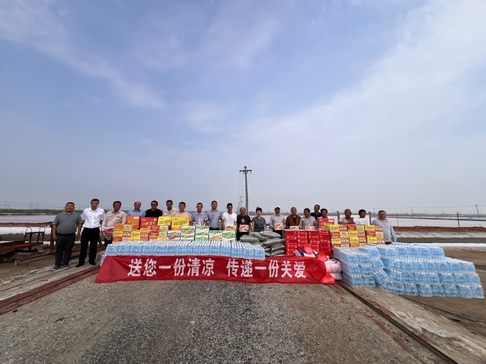 在日晒制盐滩头、宵洋物流码头、资源闸站、灌西盐场街头,公司领导分批带队深入现场,为他们送去了“清凉礼包”,叮嘱他们一定要合理安排作息时间,保持身体健康,以充沛的体力和饱满的热情投入安全生产等各项工作中。同时要求各分公司要根据夏季特点,强化安全教育,合理安排好职工高温天气工作时间,特别是要加强对露天作业场所和高温作业岗位的防暑降温措施落实,切实做好高温期间的防暑降温工作,确保一线职工度过一个安全、清凉的夏季。