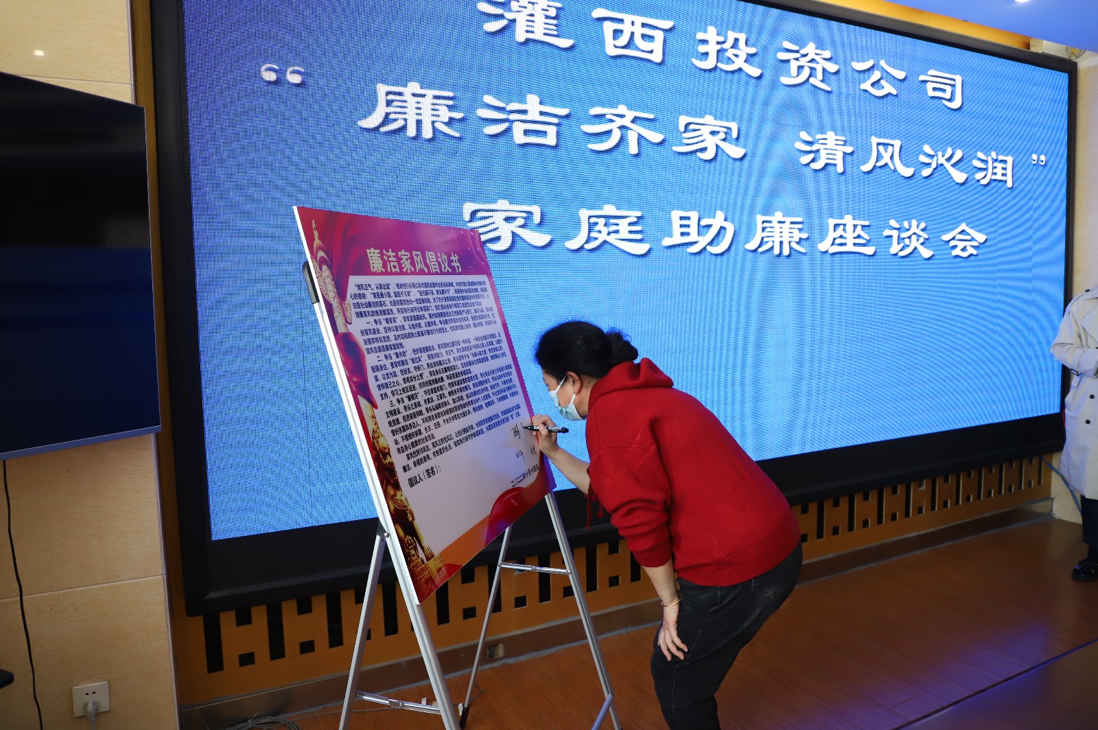 廉内助代表们一行先是参观廉洁文化展厅,观看《远离家庭腐败》警示教育片,随后共同签订《廉洁家风倡议书》,赠送树清廉家风廉洁文化书籍,接着廉内助代表们结合自己的切身体会,对家人辛勤工作表示理解和支持,还围绕“如何树立好家风,把好廉洁关”进行了交流探讨。大家纷纷表示,现在的安稳、幸福日子来之不易,在今后家庭生活中将一如既往把好“家门”、树好家风,为“枕边人”开展工作提供有力的廉洁保障。