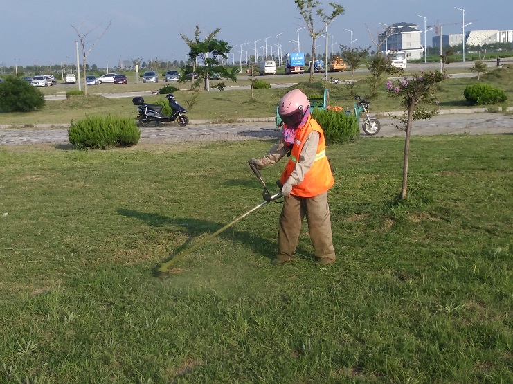 夏季的高温多雨季节,使道路边、绿地草坪的杂草疯长,为保证临港产业区和新城的绿化效果,连日来,南翼公司绿化养护人员冒着烈日酷暑,对区域内的绿化苗木进行修剪,对绿化草坪进行修整,清除杂草,着力打造生态宜居的美丽环境。