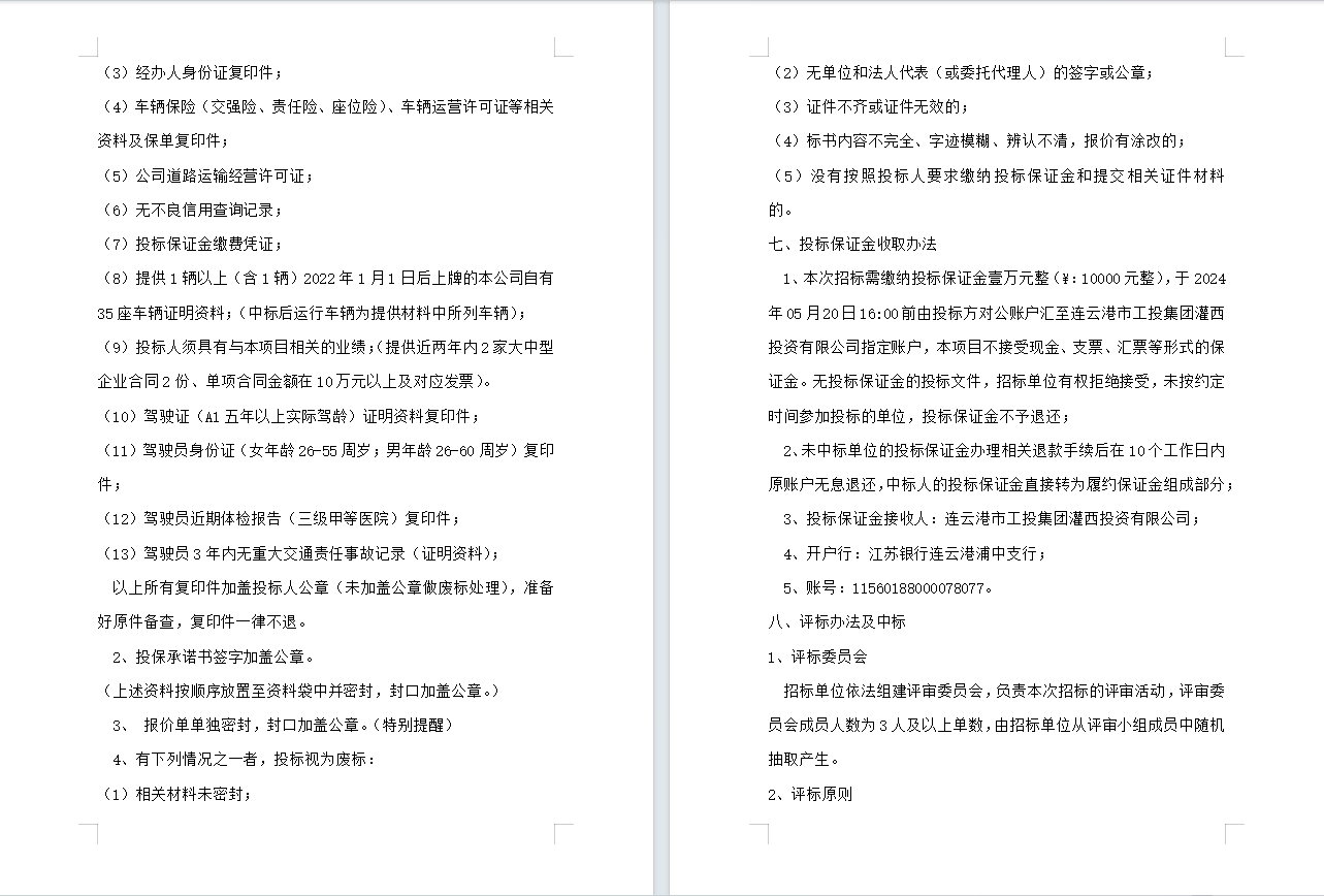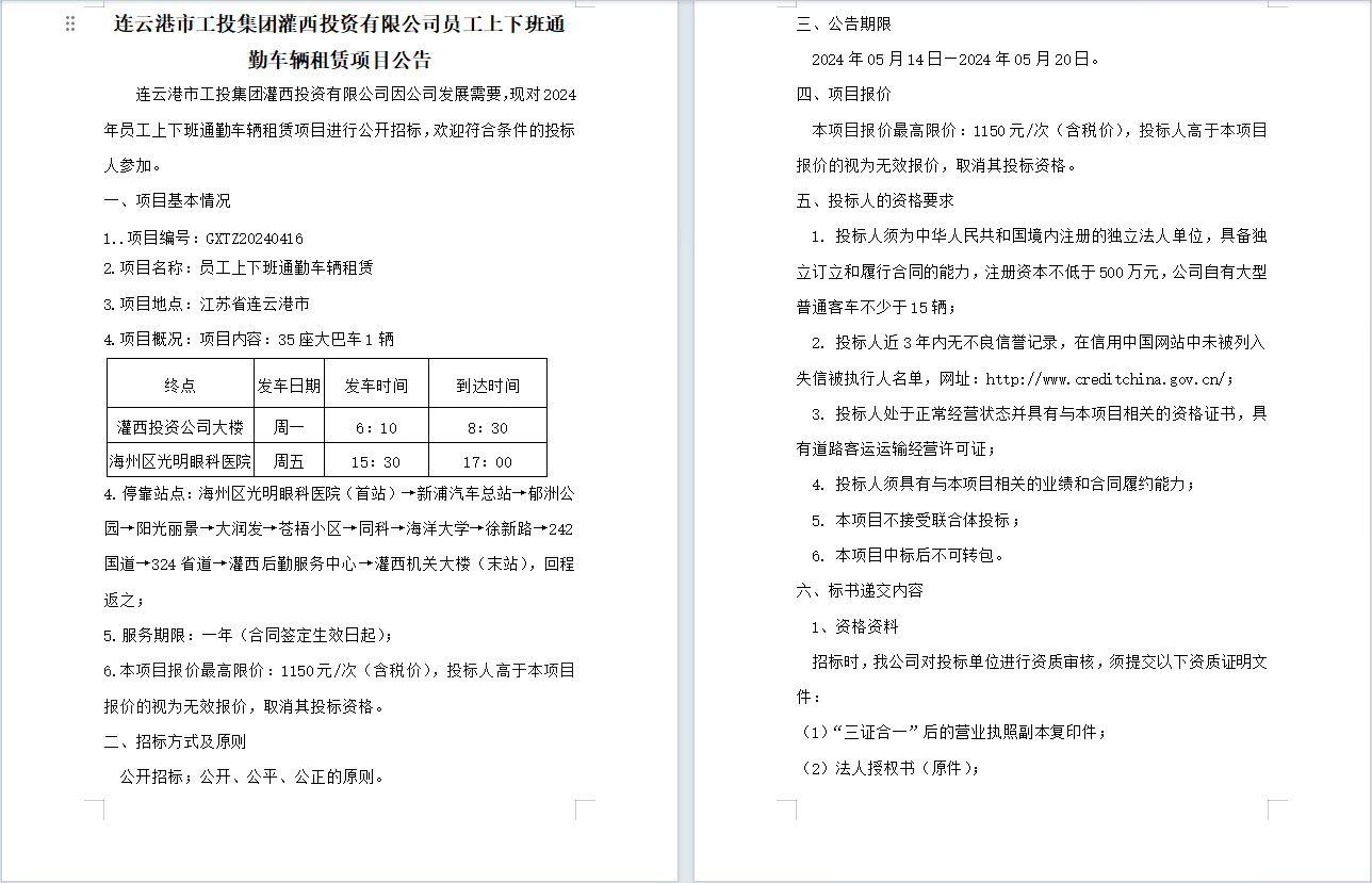 连云港市工投集团灌西投资有限公司员工上下班通勤车辆租赁项目公告