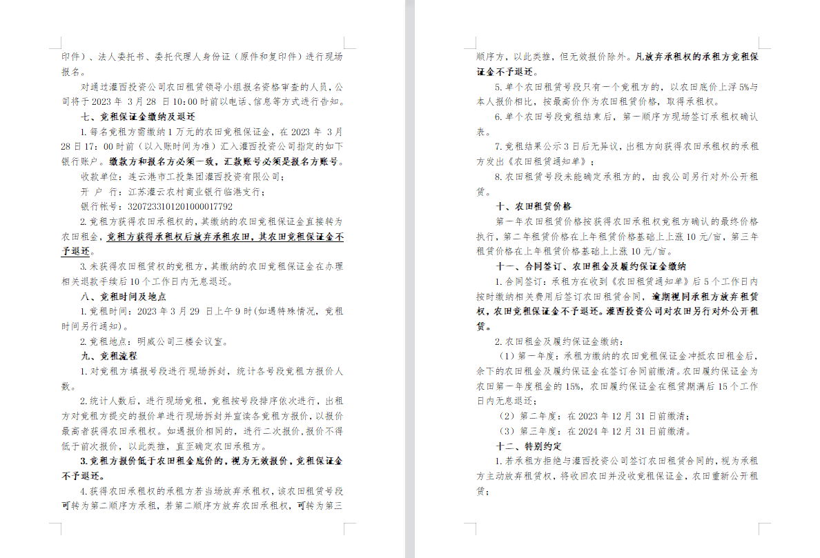 2023年灌西投资公司农田公开竞租三次公告