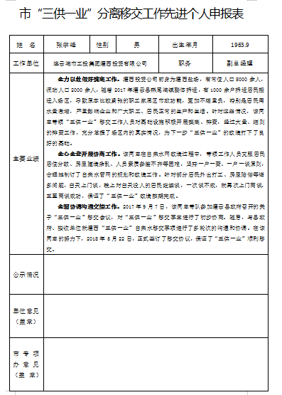 市“三供一业”分离移交工作先进个人申报表