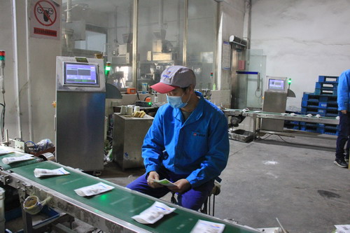 包装盐车间生产班长王东海巡视生产线
