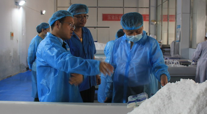 检查组一行实地查看了生产车间、化验室、库房等,对我公司的生产过程记录、检验记录、人员培训记录及质量管理制度等台账进行了检查;检查组对我公司的食盐安全管理工作给予充分肯定,并对下一步工作提出了建议和意见。(质管部)