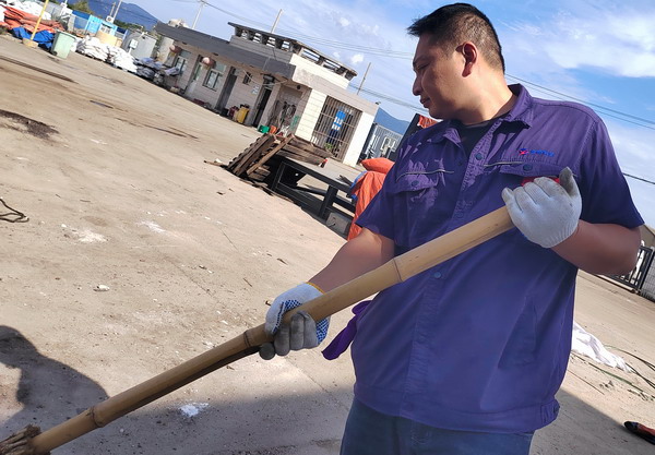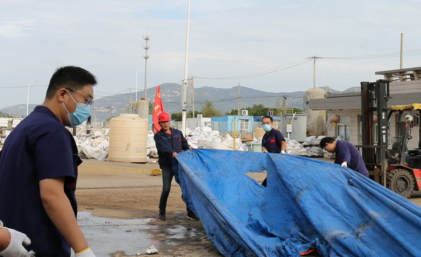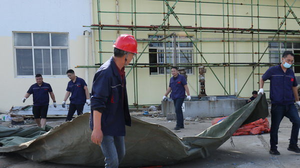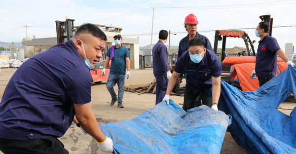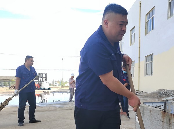 期间,共整理毡盖塑(帆)布1000余平方、清洁厂区地面近500平方、清洁室内墙面70余平方。(金宣)