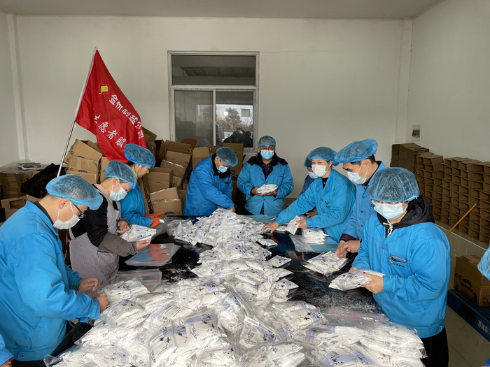 近期,根据客户需要,金桥制盐公司网店为天猫超市提供个性化需要配套产品,订单数量激增。1月25日,公司机关组织党团志愿者到车间参与手工包装盐产品,单日封装盐产品3.5吨。(金宣)