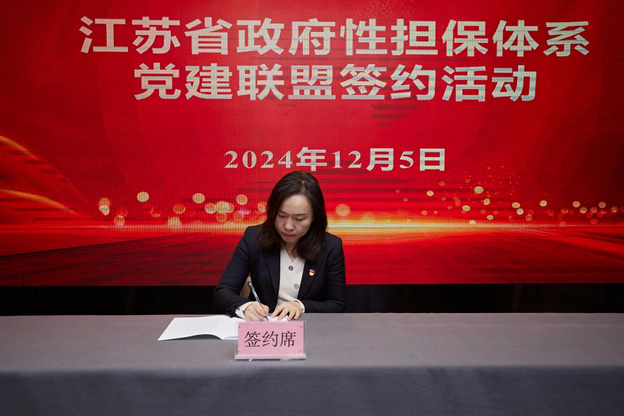为深入贯彻落实党的二十大和二十届二中全会、三中全会精神,以高质量党建引领我省政府性担保体系高质量发展,推动党建工作与业务工作互融互促,2024年12月5日,江苏省融资再担保有限责任公司在南通市发起成立我省政府性担保体系党建联盟,首批邀请全省13个设区市的14家重点政府性担保机构集中签约。