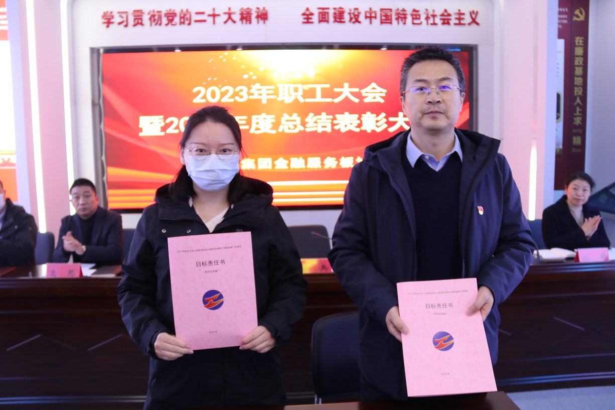 会上公司对2022年度先进部门、先进个人、业务标兵、服务标兵进行了表彰,并与部门代表签订了目标责任书。