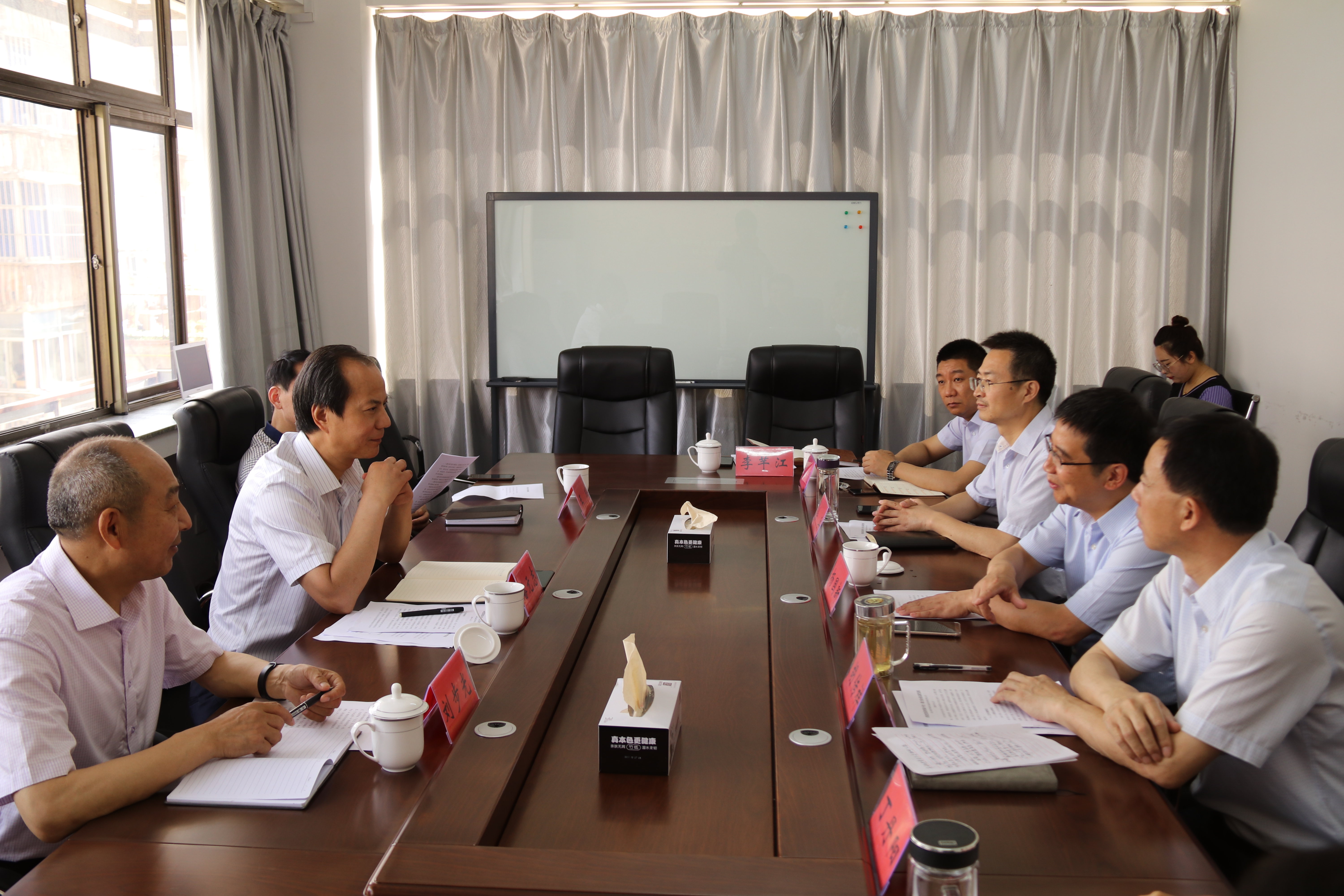 | 6月3日,连云港市地方金融监管局潘元志局长、王成副局长、刘步光处长一行三人到格斯达担保公司调研、指导,集团公司常务副总经理杨国新及格斯达担保公司相关负责同志参加了座谈交流。
