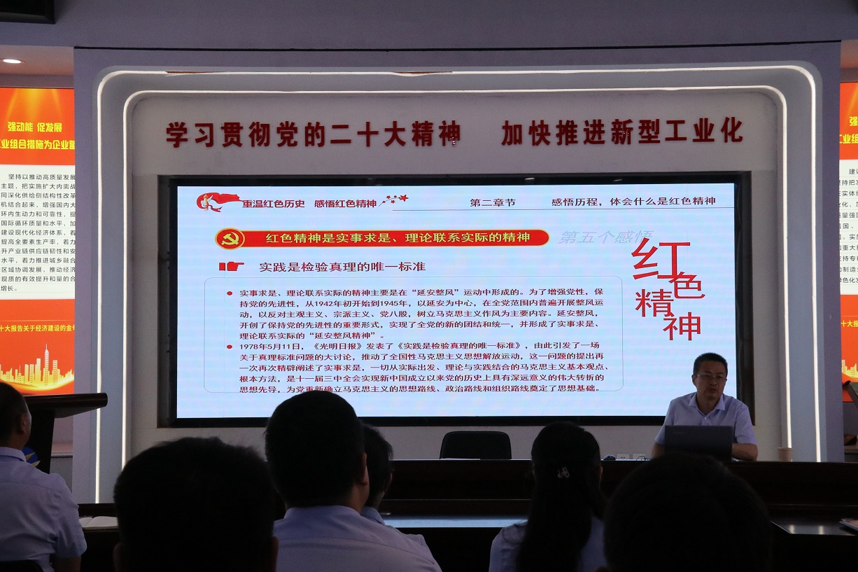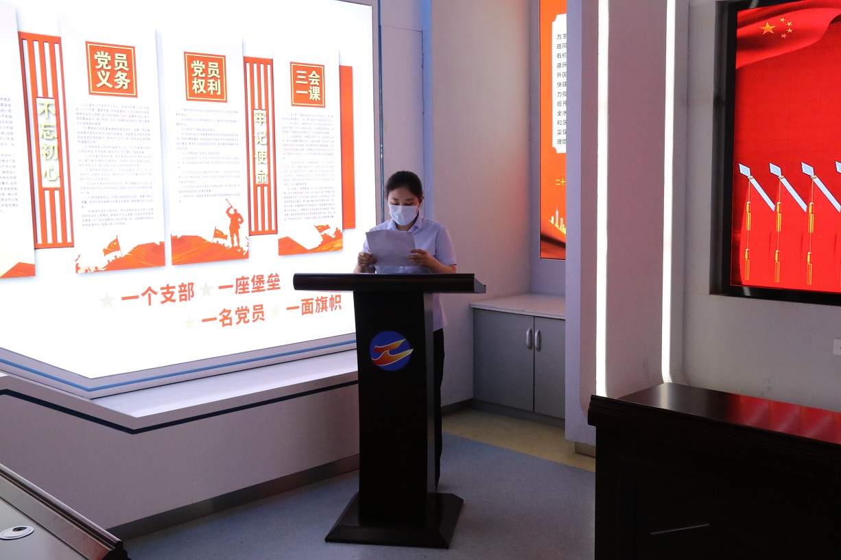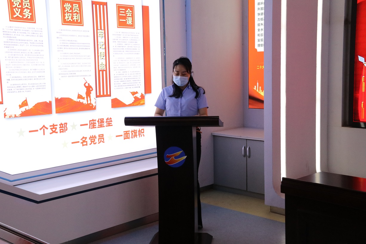 随后,支部书记徐兵为大家上了一堂题为“增强党性修养,筑牢使命担当”的专题党课,他结合党的历史及当前国内国际局势,生动的阐释党的革命精神和光辉历程,旨在让新党员感受到了党的神圣,进一步激发党员的爱国热情和奋斗精神,激励广大党员党员以自身的实际行动积极实践誓词,这堂党课对于新老党员们来说,都是一次宝贵的学习机会。党课最后,支部书记徐兵带领新老党员一起,面向鲜红的党旗,举起右拳,重温入党誓词。