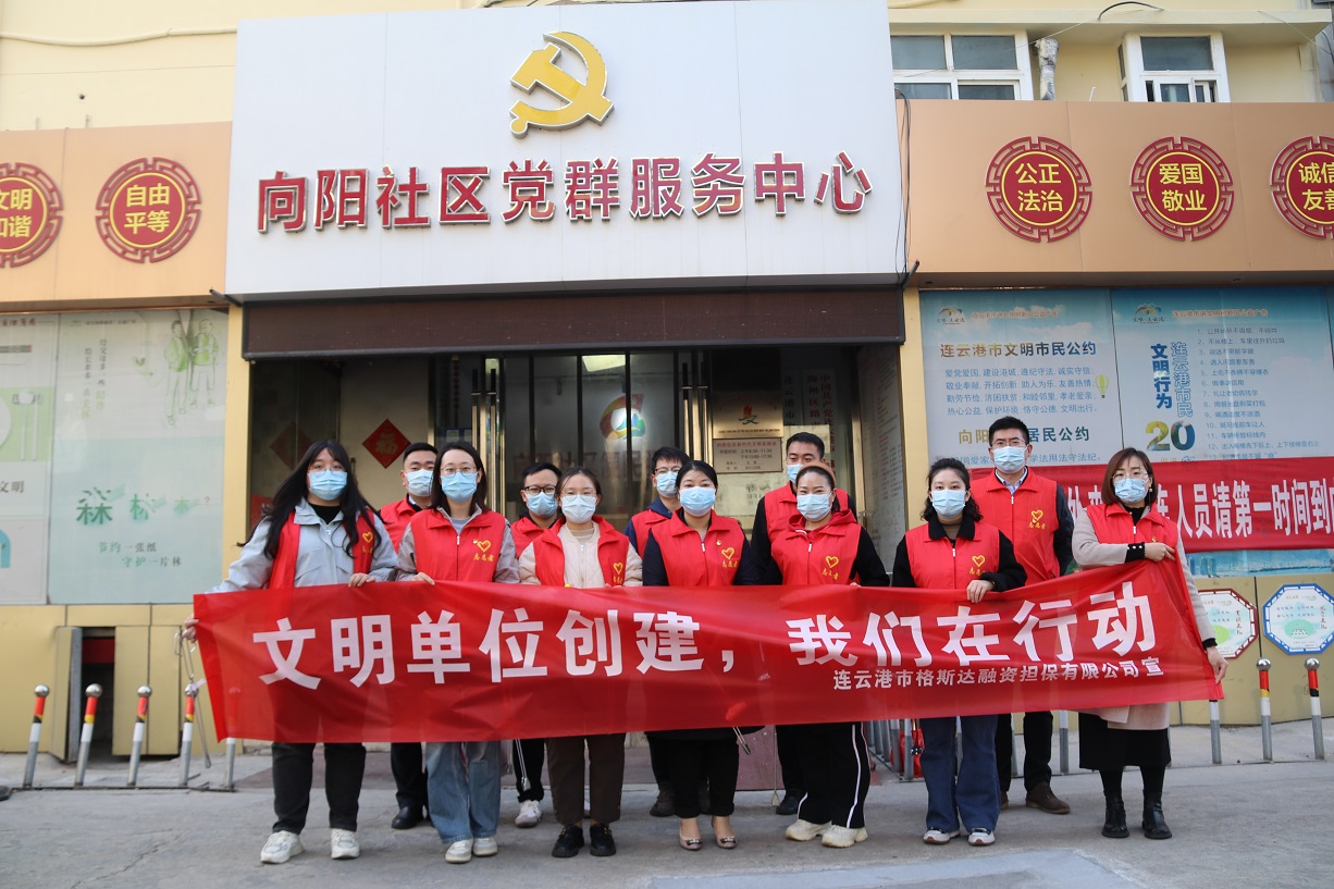 为发扬志愿者精神,响应海州区文明办开展创建全国文明城市“文明单位创建我们在行动”活动,11月4日,金融板块组织17名党员、积极分子、青年员工参加向阳社区志愿服务活动。