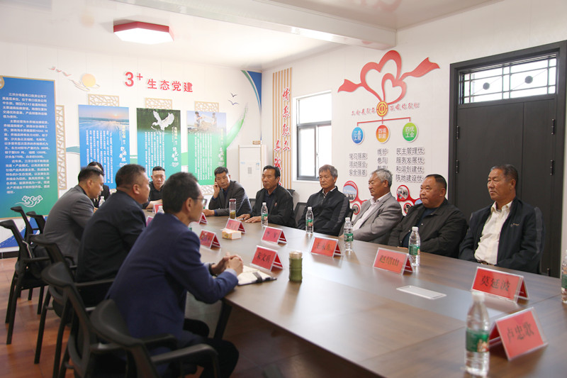 下半程,在三洋分场会议室,公司领导史祥平、梁永、朱文兵与劳模先进代表一起开展了座谈。在座谈中,史祥平简要介绍了近几年公司在高标准池塘改造、农业生产、大米销售、民生事业等方面取得的成效,重点对渔光互补项目的实施,对公司面对新能源新产业新赛道带来的发展机遇和提供的优良平台,为青口产业转型升级,带动高质量发展起到了很好的推动作用。劳模先进们纷纷发言,提出自己的想法,为公司的发展积极建言。