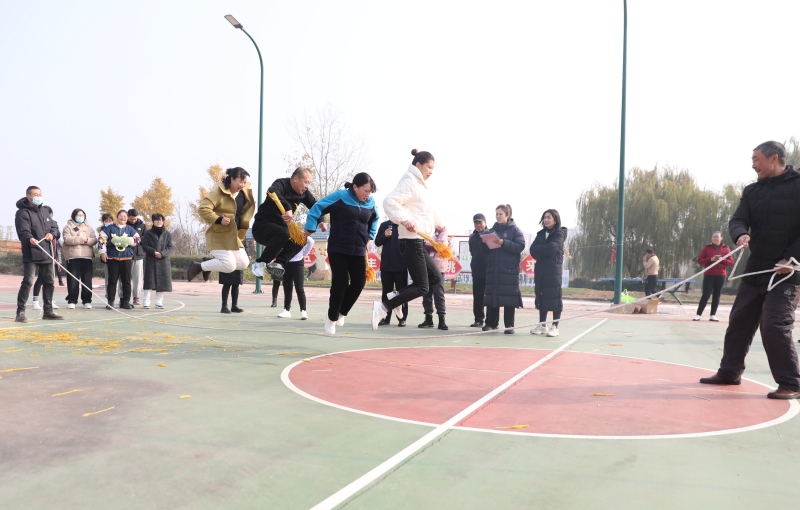 在“五谷丰登跳起来”比赛中,每队的6名选手们协作配合,摇绳的节奏张弛有度,起跳的灵活整齐,手中的稻穗在跳动中摇曳生姿。