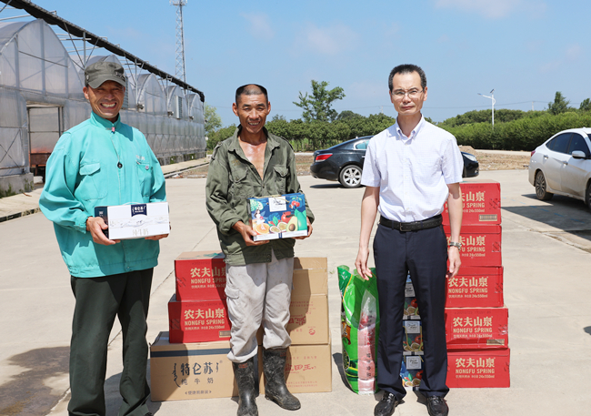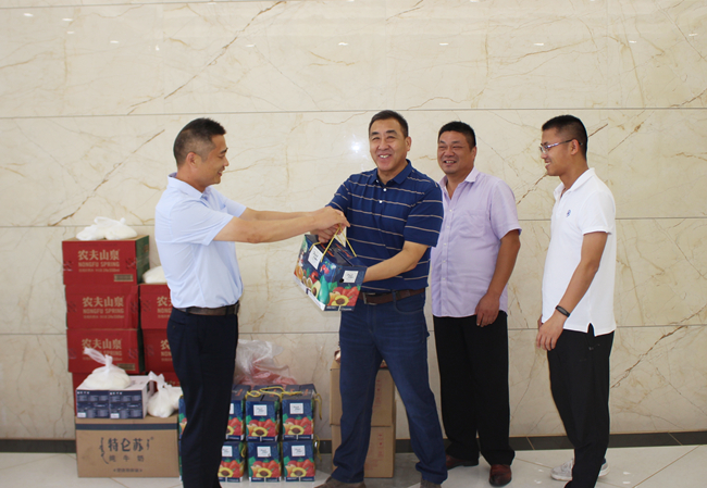 7月30日上午,公司领导班子成员分组带着绿豆、白糖、矿泉水等防暑降温物品,到各基层单位为职工们送去丝丝清凉和滴滴关爱。在慰问现场,领导们亲自为一线职工送上降温物品,并叮嘱他们要提高自我保护意识和安全防范能力,合理安排工作时间,注意防暑休息。