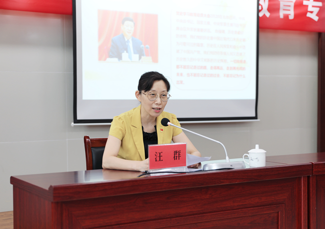 为推进党史学习教育走深走实,6月29日下午,集团纪委书记汪群为我公司党员干部讲了一堂党史学习教育专题党课。公司领导班子成员、各单位党政工负责人、党员代表以及机关全体管理人员在会场参加学习。公司党委书记史祥平主持会议。