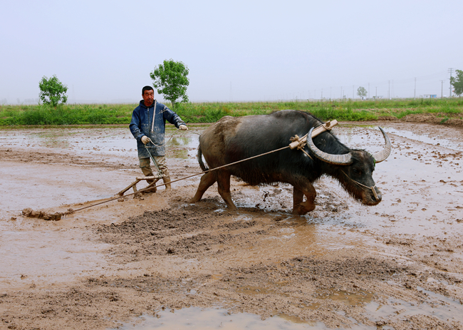 ▲不用扬鞭自奋蹄,深耕细作促生产。田间还会遇见牛蹄疾步稳、耕地拖平难得一见的传统生产场面,对于小部分高低不平的田块用牛找平较为方便,保证了在春耕各环节上做到精益求精。(仲伟彬、刘 杨)