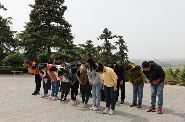 全体青年在讲解员同志的带领下拾阶而上,认真聆听学习了抗日时期革命先烈为民族独立与解放抛头颅、洒热血的英雄事迹。青年代表向革命先烈敬献了花篮,向烈士冢三鞠躬默哀,缅怀先烈。随后,在烈士冢前,面对党旗,青年党员举起右手重温入党誓词。