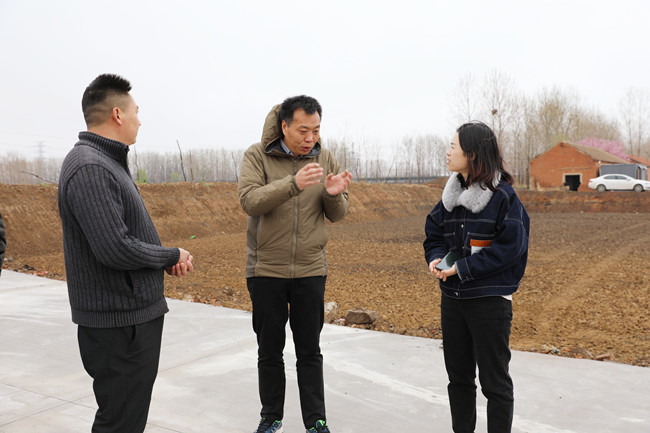 4月2日上午,冒着淅沥沥的春雨,青口公司副总经理许太冬带领樊家选、赵华兵两位技术指导小组成员,来到海头镇龙河村新复垦的240亩土地现场,与结对联建的龙河村村委成员热切交流,为新复垦的土地发展规划出谋划策。