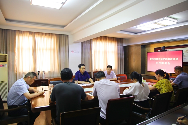 8月13日下午,青口投资公司召开创建文明城市工作部署会,进一步统一思想、明确任务,迅速行动起来,全力打赢创建全国文明城市攻坚战。公司党委副书记、工会主席梁永主持会议,副总经理刘军、总经理助理杨青松出席会议。相关部门、单位以及黄沙坨社区、派出所负责人参加。