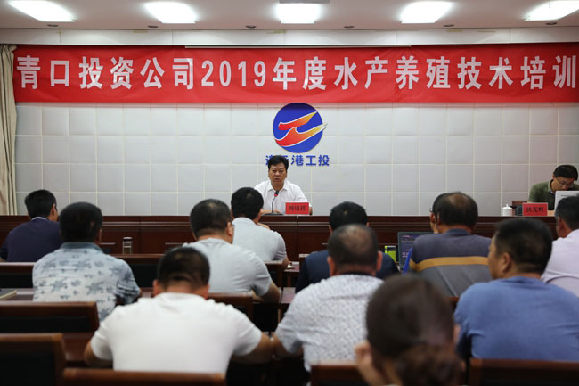 8月28日下午,青口投资公司在四楼会议室举办2019年水产养殖技术培训,来自三洋、黄沙、大新、生态种养管理人员及部分养殖户代表,共计50余人次参加培训。副总经理周绪祥、总经理助理张铭杨参加。