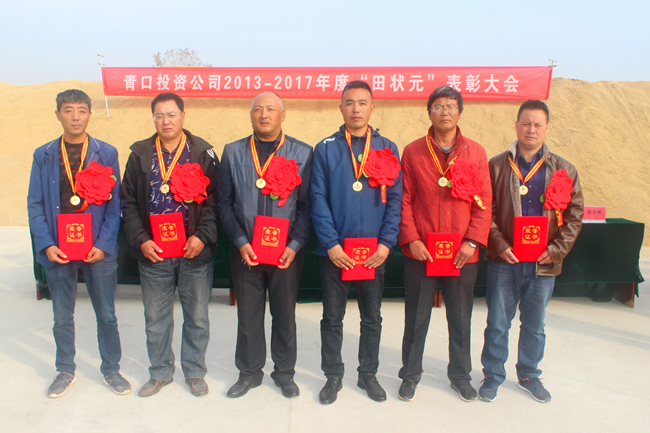 为了推动高质发展的经济建设大潮,助力青口投资公司 “四业并举、五力同发、三年攀高”的宏伟目标,青口投资公司对2013年到2017年各年度中,“盐稻”种植作出突出贡献的一线条田工进行“田状元”评选,经大新农场、明威公司两个种植单位推荐,评审领导小组评定并报经公司研究决定,对赵华兵等6名同志授予不同年度“田状元”,并给予表彰。