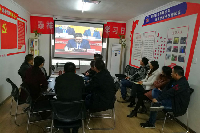 4月8日上午,青口投资公司以9个支部为单位,组织近百余名干群集中收看了全市“高质发展 后发先至”动员大会电视直播。